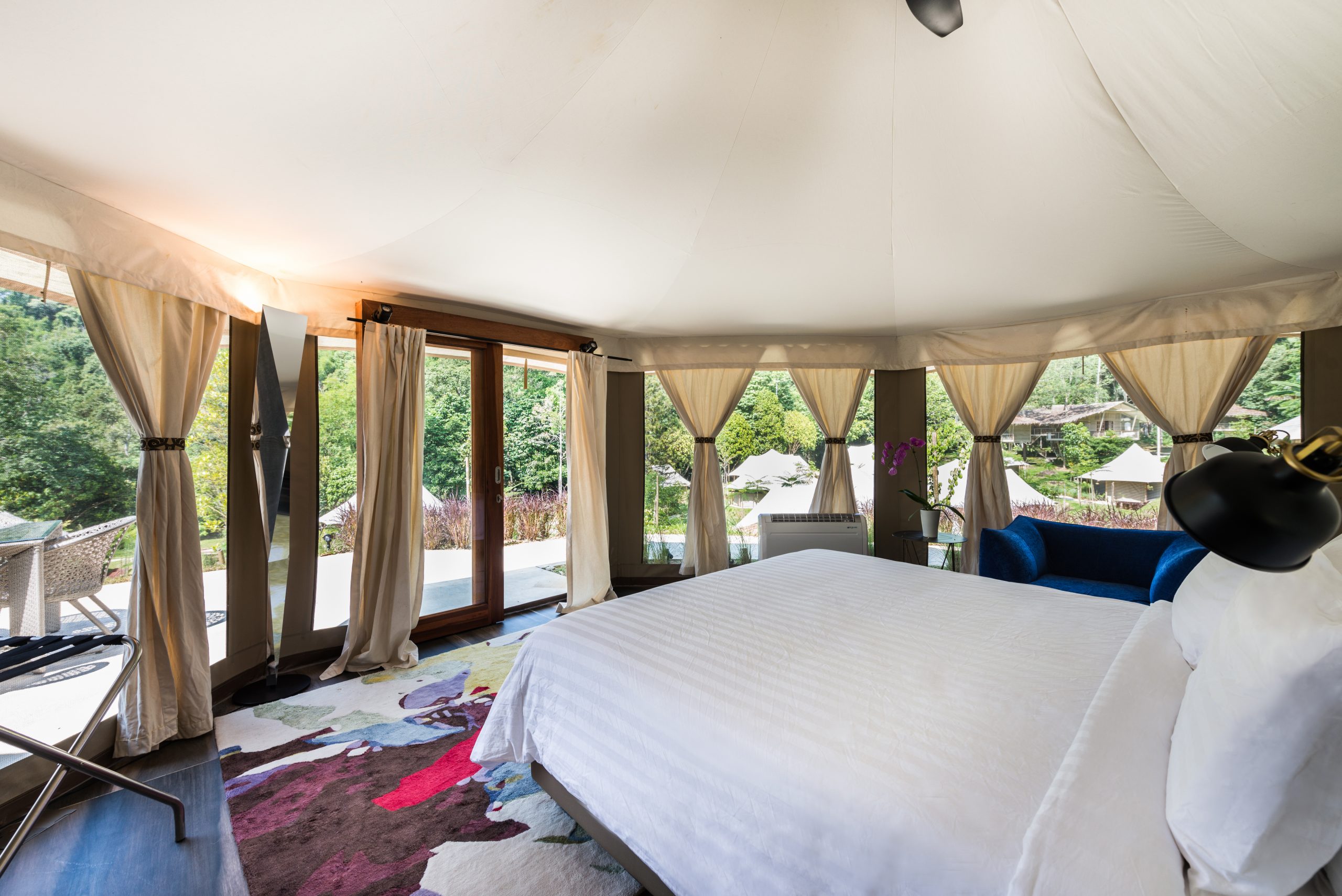 Our most luxurious suite features two king-bedded rooms, en-suite open-air and enclosed bathrooms, and a private lounge overlooking our expansive grounds. Ideal for large families.