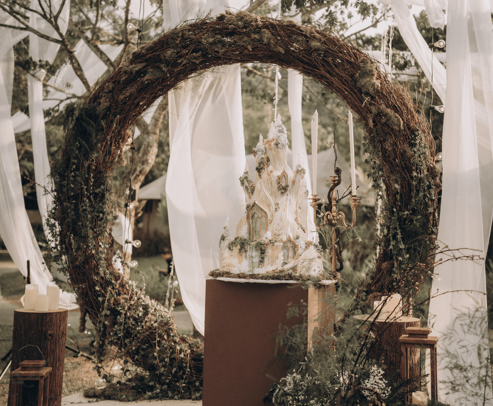 • Ceremony and reception spaces nestled within the forest
